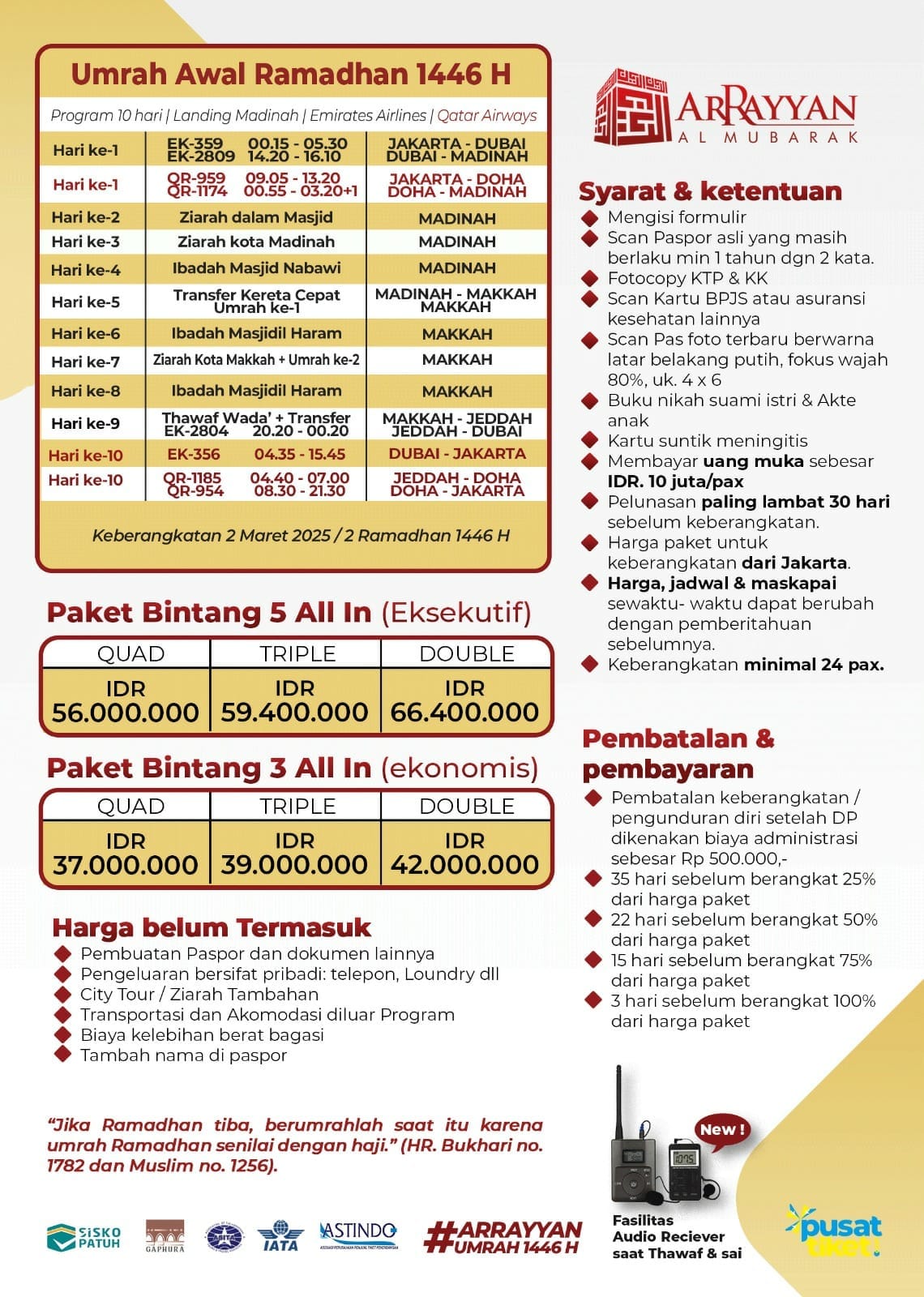 - Harga paket untuk keberangkatan dari Jakarta.