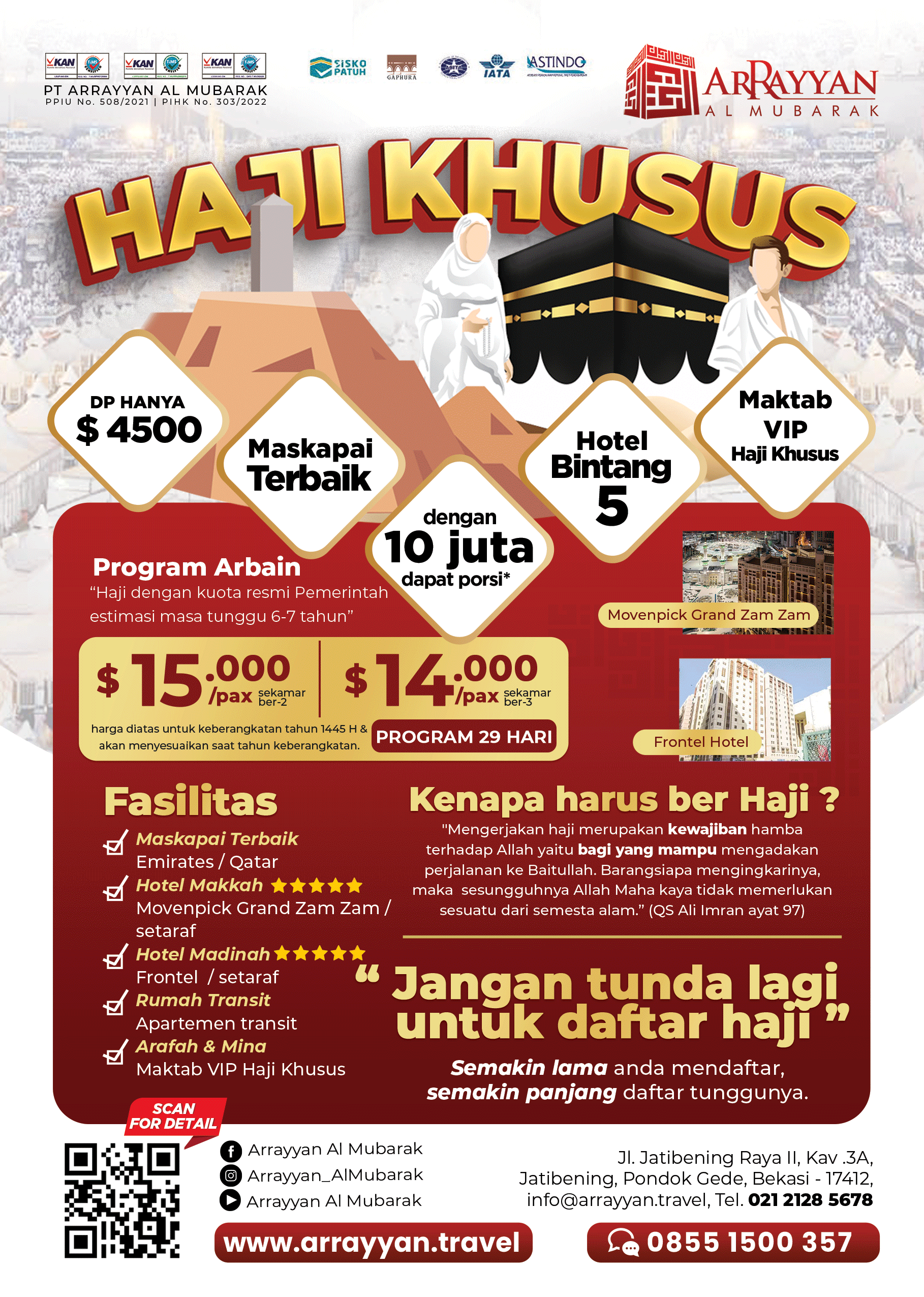Program keberangkatan Haji Khusus menggunakan kuota resmi dari pemerintah melalui Kementerian Agama.